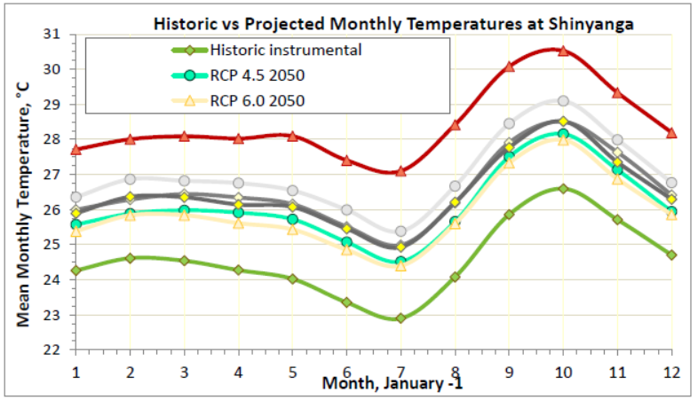 Figure 5: Historic and Projected Seasonal Temperatures at Shinyanga